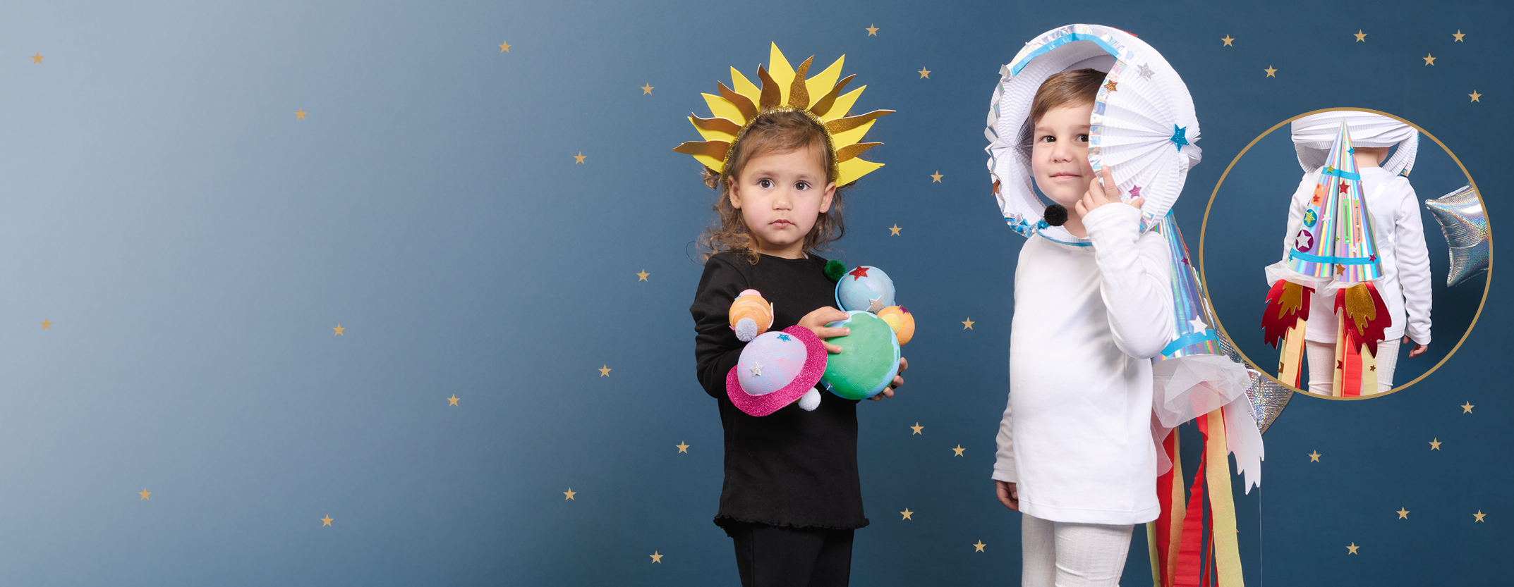 Astronauten- und Planetenkostüm.