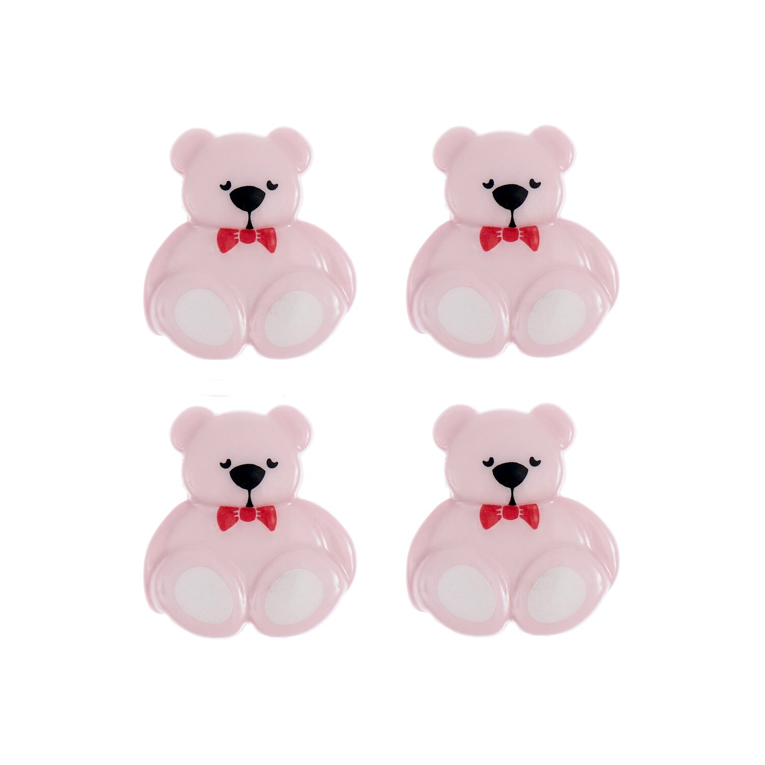 Dieses Set enthält vier Knöpfe in niedlicher Teddyform, die mit einem detailreichen Gesicht gestaltet sind. Mit einer Größe von 1,6 x 1,8 cm sind sie kompakt und vielseitig einsetzbar, um besondere Akzente zu setzen. Das verspielte Design macht diese Knöpfe zu einer idealen Wahl für Kinderkleidung, Accessoires oder dekorative Bastelarbeiten. Sie bringen eine warme und freundliche Note in jedes Projekt.